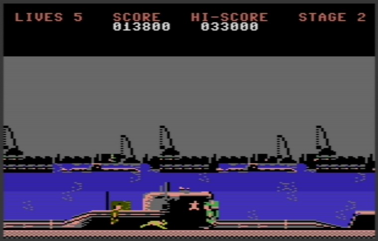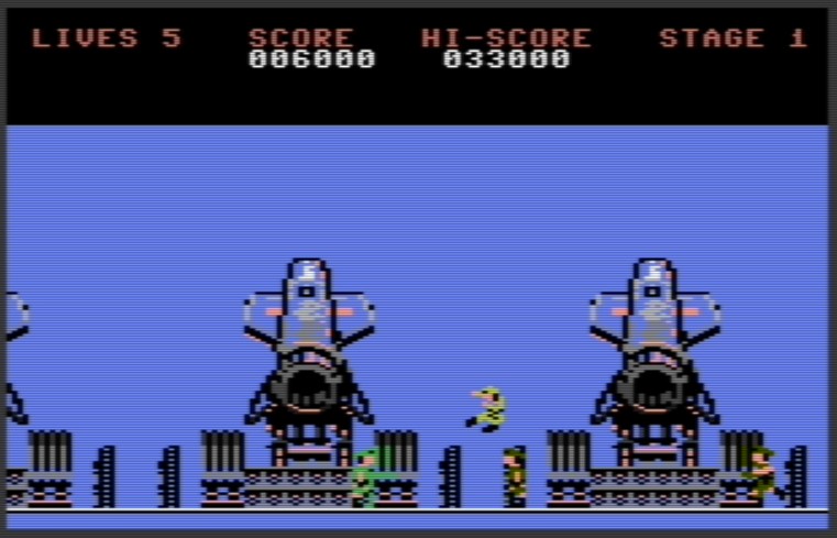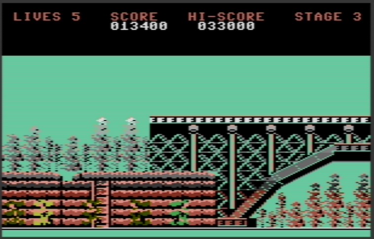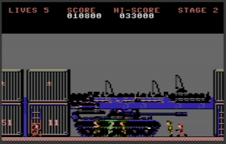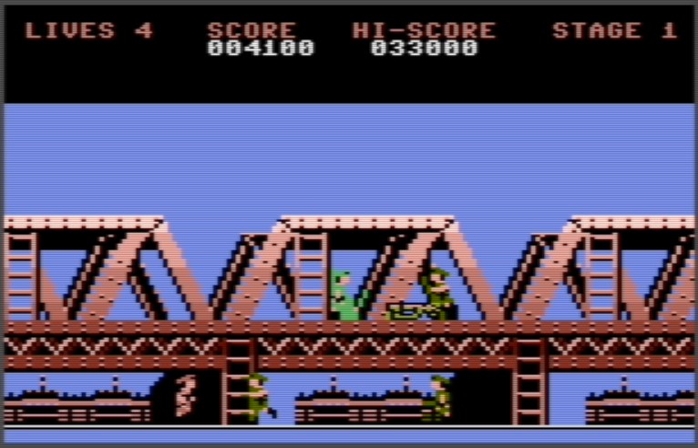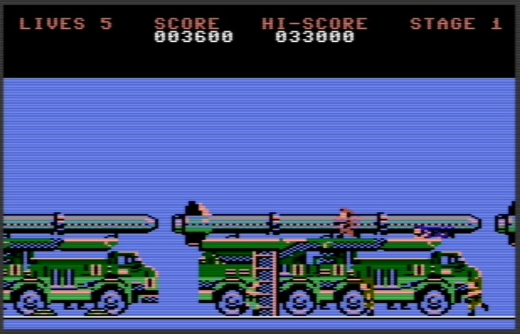 Green Beret on the Commodore 16 is widely regarded as one of the worst video games ever made, with a number of Youtube videos made on the subject. Everything about it was wrong - terrible blocky graphics with washed out colours, unfair collision detection, enemy bullets that travel at the speed of light, scrolling that stops the entire game for several seconds, no weapons, no music....the list goes on.